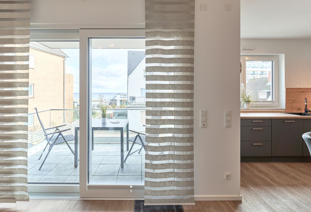 Diese Wohlfühlwohnung zeichnet sich durch eine moderne, hochwertige Inneneinrichtung aus. Die Küche in ansprechender Optik ist mit hochwertigen Einbaugeräten ausgestattet. Neben einer Kaffeemaschine steht Ihnen auch eine Pad-Maschine zur Verfügung. Im Wohnzimmer warten auf Sie ein Entertainment-Smart-TV in 55" und eine Soundbar. Ein ansprechender Wohn-Essbereich erwarten Sie. Von dem bequemen Sofa aus haben Sie einen Teil-Ostseeblick. Der gemütliche Essbereich lädt Sie auch zu gemeinsamen Spieleabenden ein. Eine Spielesammlung ist vorhanden.