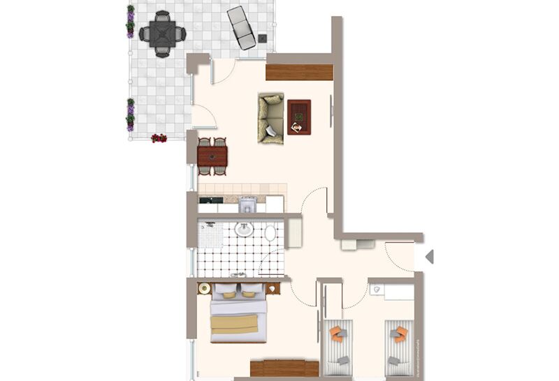Genießen Sie Ihren Urlaub in dieser lichtdurchfluteten Ferienwohnung, die Ihnen mit ihren zwei geräumigen Schlafzimmern und dem großen Wohnzimmer mit integrierter Küche, großem Esstisch und gemütlicher Fernsehecke mit einer Bose-Musik-Station viel Raum zum Entspannen bietet. WLAN steht Ihnen kostenlos zur Verfügung. Der nach Südwesten ausgerichtete Balkon ist mit einer Liege sowie Tisch und Stühlen sowie einem Sonnenschutz ausgestattet. Im ersten Schlafzimmer steht ein bequemes Doppelbett, im 2. Schlafzimmer warten 2 Einzelbetten auf Sie. Beide Schlafzimmer sind mit Flachbildfernsehern ausgestattet. In allen Räumen sind elektrische Rollläden angebracht. Das helle Tageslichtbad verfügt über eine bodengleiche Dusche. Neben der Fußbodenheizung steht Ihnen hier ein Handtuchheizkörper zur Verfügung. Eine zur Wohnung gehörende Waschmaschine befindet sich im Keller.
