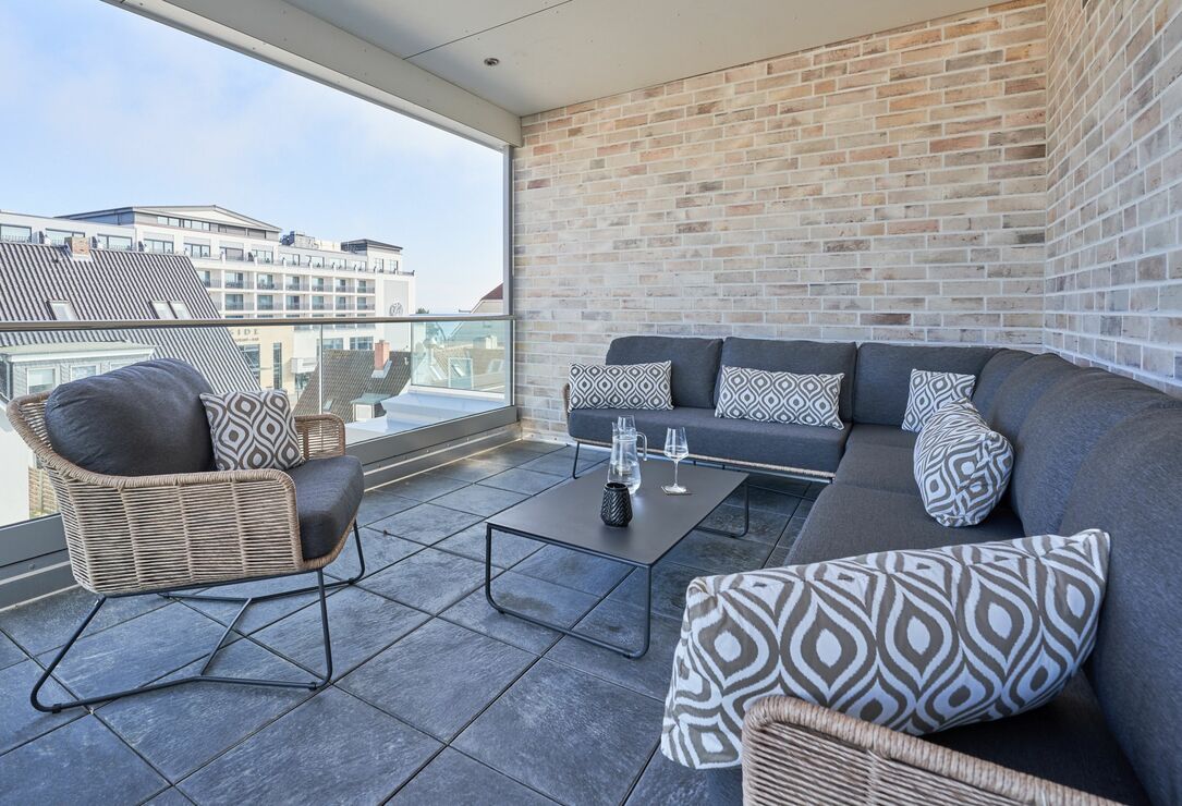Auf den Dachterrassen (eine mit Meerblick und eine in Süd-West-Ausrichtung) stehen Ihnen Loungemöbel, Tisch und Stühle sowie Liegen zur Verfügung.
